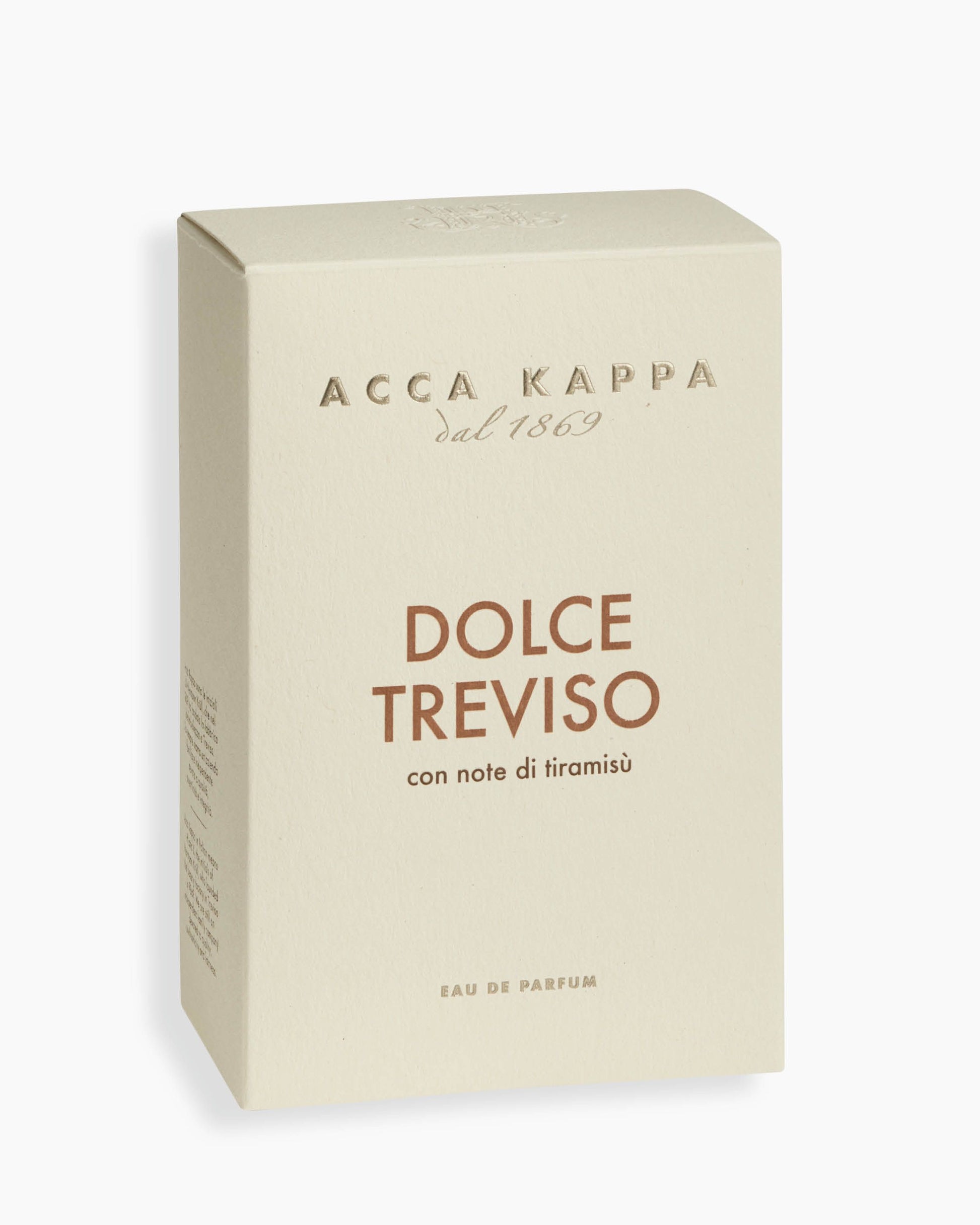 Dolce Treviso, aux notes de tiramisu, est un voyage sensoriel dans les rues pittoresques de Trévise, berceau du tiramisu et notre maison historique. Les premières notes offrent une étreinte chaleureuse de chocolat et de café, suivie de la douceur de la vanille, complétant cette symphonie de sensations. Un parfum sensuel aux tons chauds et gourmands, évoquant les plaisirs de la vie. C'est une ode à Trévise, à sa culture culinaire et à la beauté de la douce Italie.